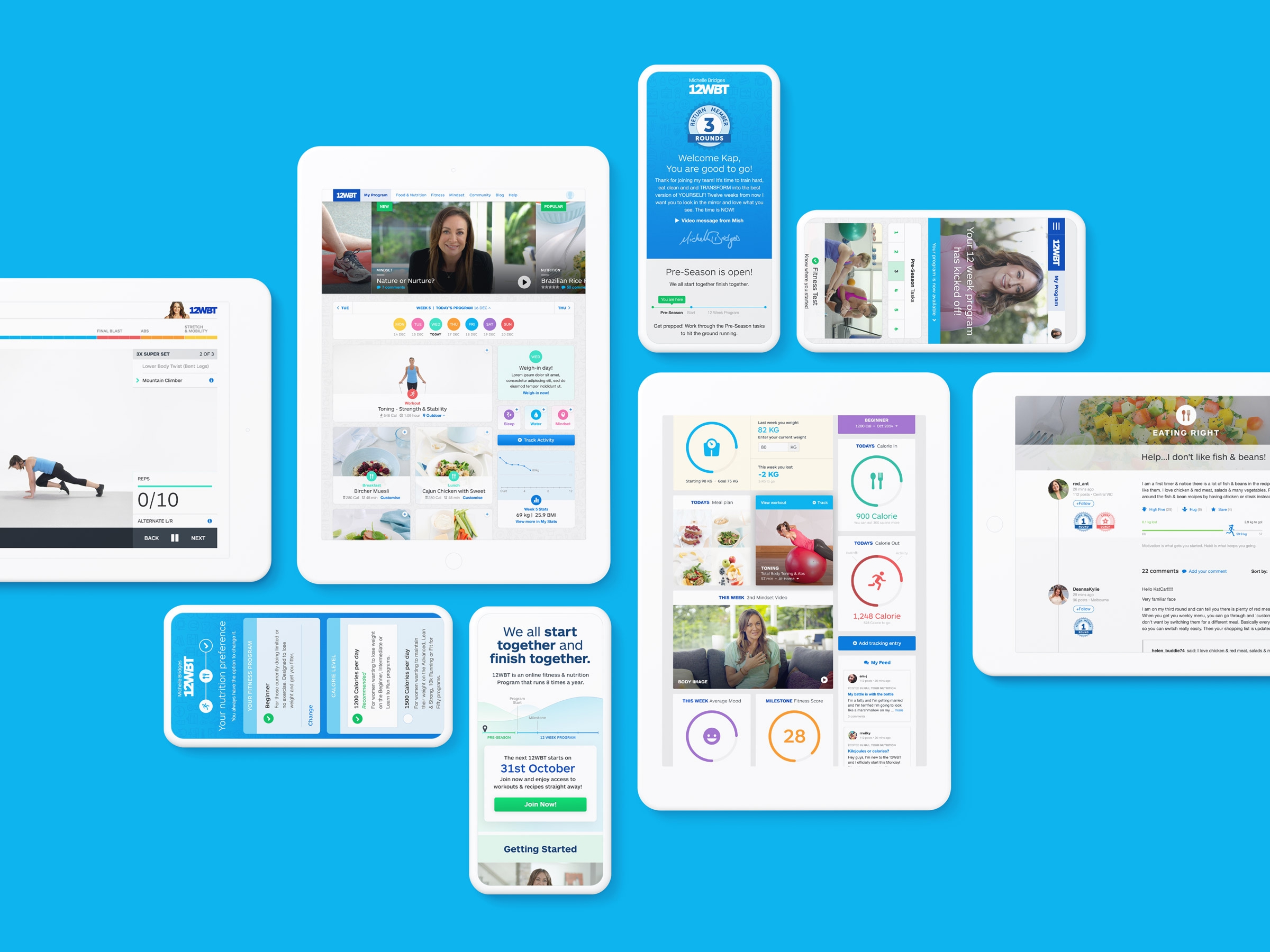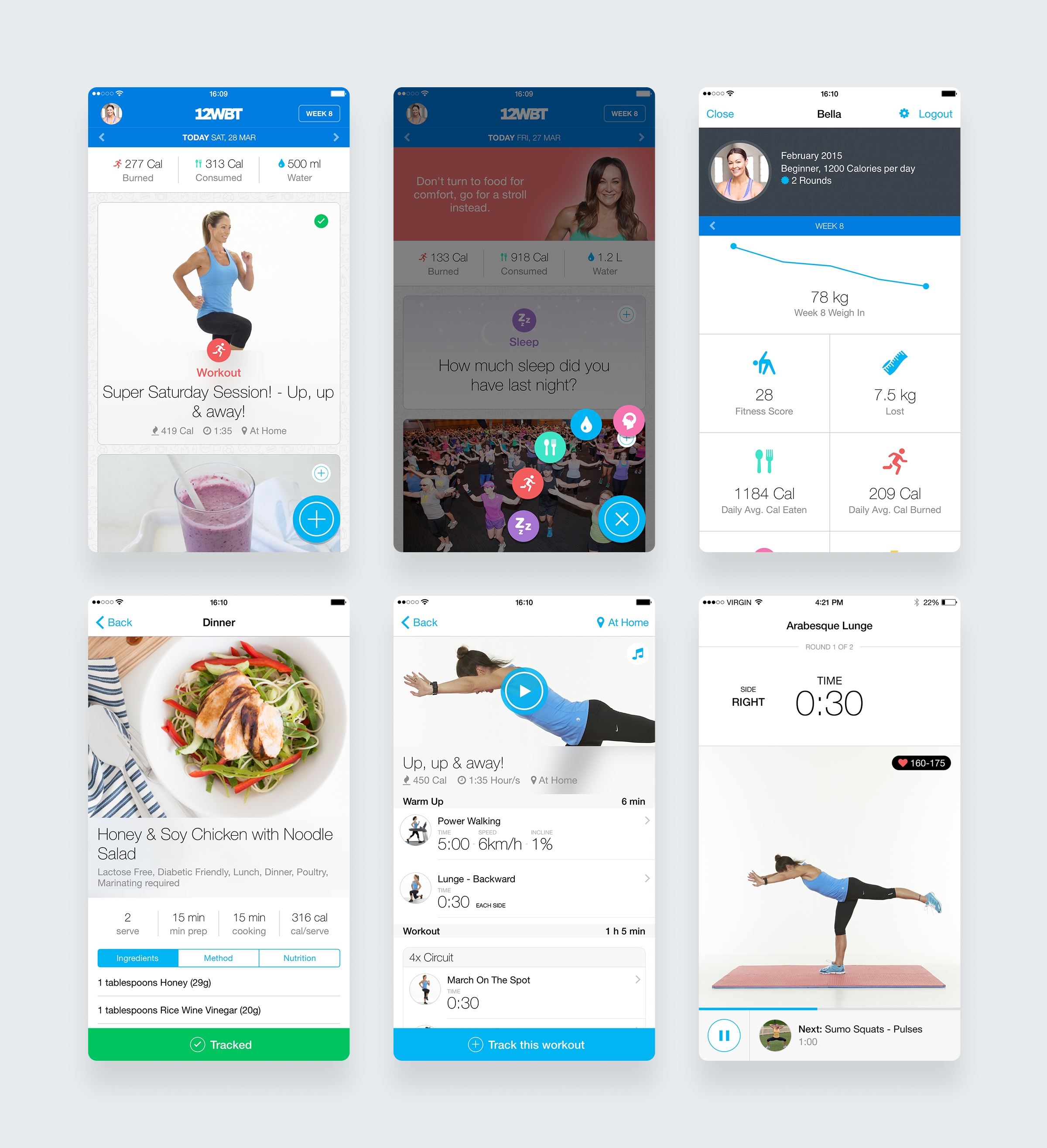 Working alongside the client's UX team, I designed the 12WBT Daily app as a companion to the main program. We focused on answering "What do I need to do today?" with a clean interface delivering personalised workouts, meal plans, and progress tracking.