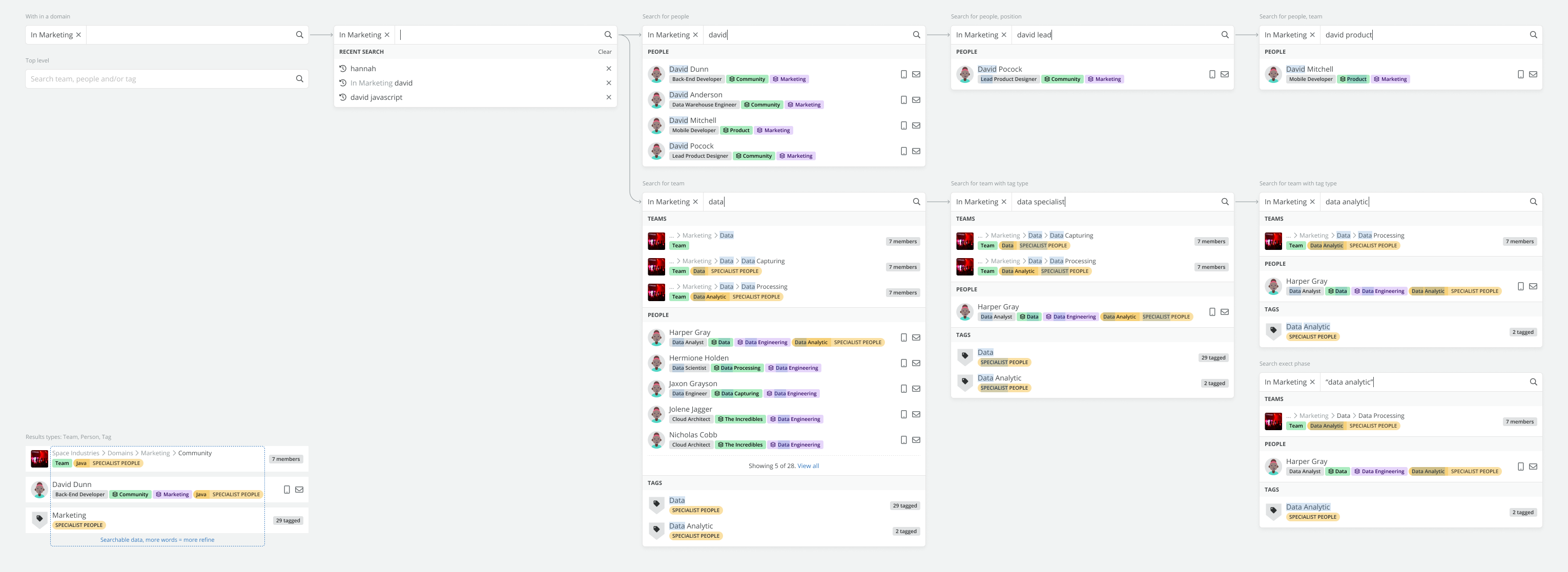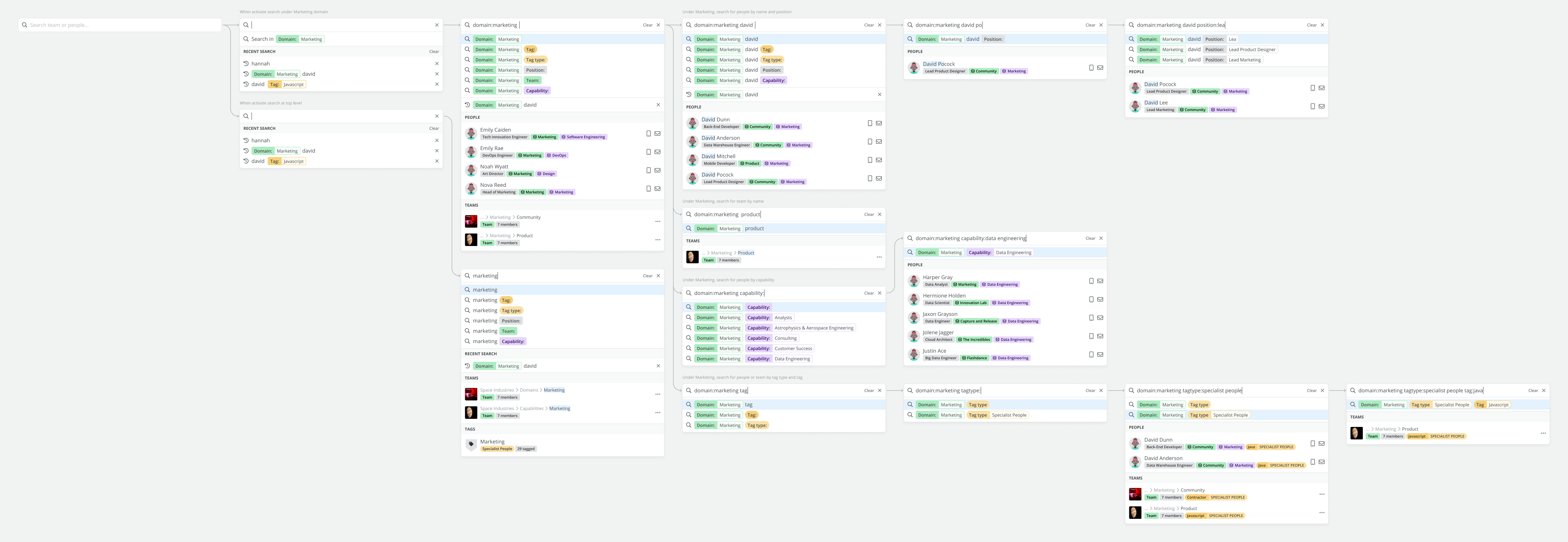 I identified and laid out detailed user search paths instead of leaving these important details for developers to figure out. This helped the client evaluate complexity levels for both users to understand and developers to build the feature.
