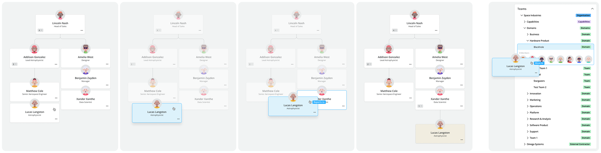 I conducted competitor research and created a balanced org chart visualisation that is clean, simple, yet customisable. I also developed a future version concept where users could move employees to different teams using a drag and drop interface.